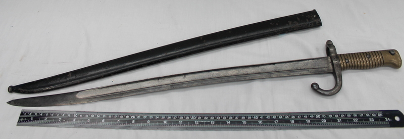 Lot 135 - 2 Bayonets ( WWII Candian Army Bayonet spikes NO 4 MK 2 with metal tube scabbards) & bayonet fighting knife 6I4 No. 55 £130