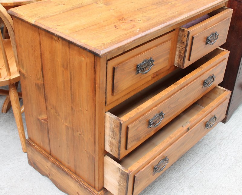 Lot 418 - Pine 3 drawer bedside cabinet £35