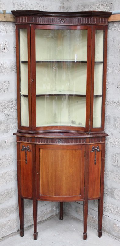 Lot 321 - Concave glass front mahogany curio corner cabinet £40