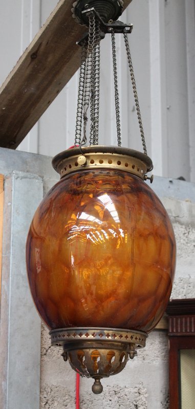 Lot 323 - Arts & crafts amber glass ceiling light shade £90