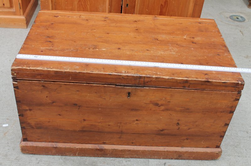 Lot 394 - Pine bedside chest, desk & tallboy £60