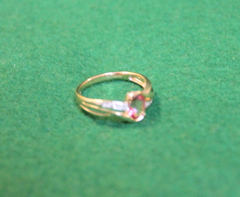 Lot 176 - 9ct Gold pink topaz & diamond twist (size O 1/2) £80