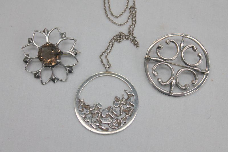 Lot 147 - Ladies necklace & brooches incl silver £55