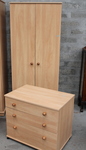 Lot 470 - Pine effect 3 drawer chest & wardrobe £20