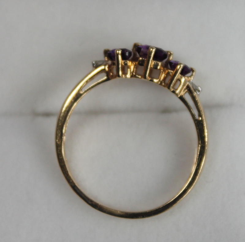 Lot 182 - 9ct Gold Amethyst trilogy ladies ring £75