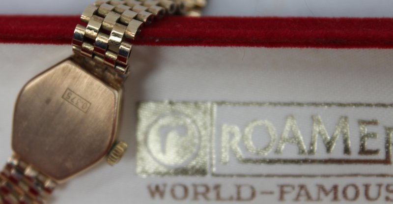 Lot 140 - 9ct Gold Roamer ladies cocktail wristwatch NOT SOLD - RESERVE £250