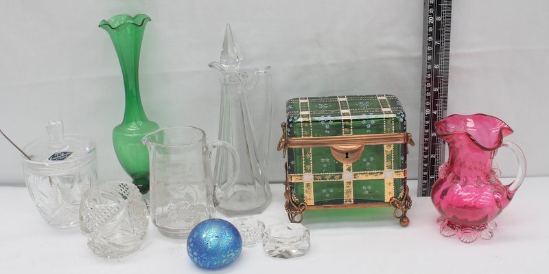 Lot 30 - Art & cut glass ware includes uranium glass jewellery box £150
