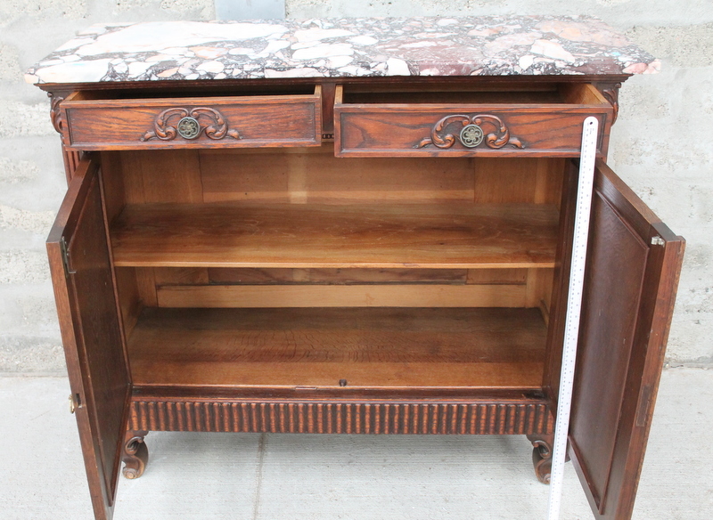 Lot 369 - Marble Topped Oak Side Cabinet £130