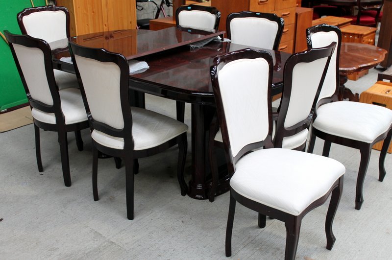Lot 451 - Extending dining table and 8 chairs including 2 carvers £80