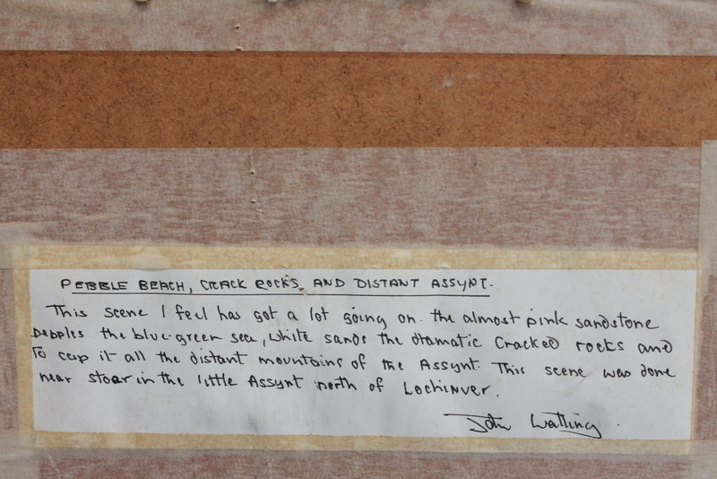 Lot 401 - 'Pebble beach, crack rocks & distant assynt' watercolour by John Watting £40