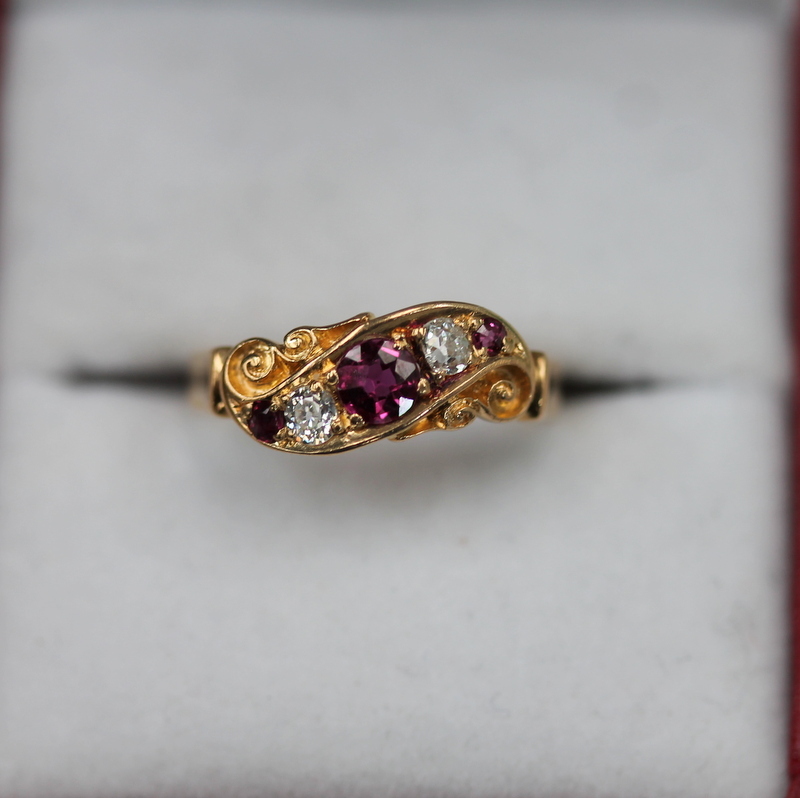 Lot 166 - 18ct late Victorian 3 Ruby & 2 Diamond Ring £100