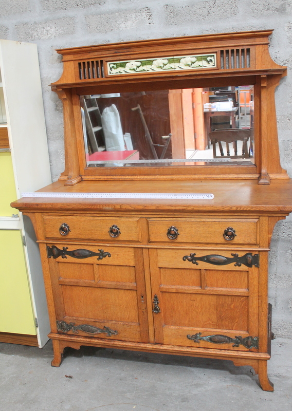 Lot 495 - Oak arts & crafts mirror back sideboard £50