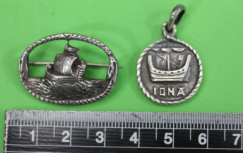 Lot 117 - Silver 'Viking Ship' Brooch & Iona Silver Pendant £38