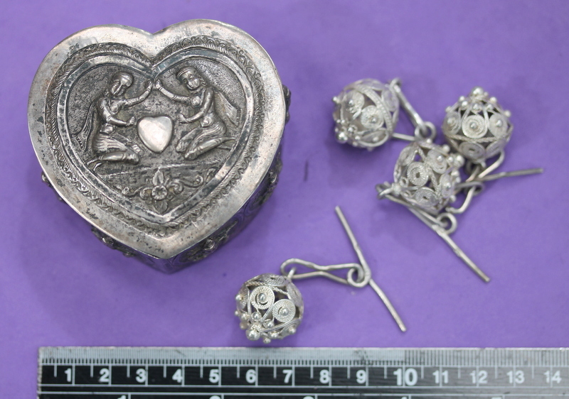 Lot 113 - Continental silver buttons & Indian silver box NOT SOLD - RESERVE £50