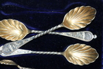 Lot 144 - Cased Silver Shell Spoons and Tongs £40