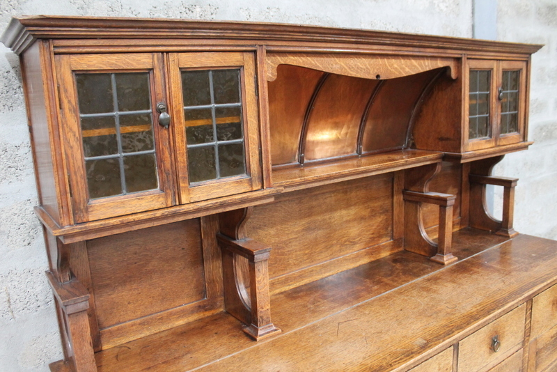 Lot 357 - Arts & Crafts Oak Dresser with copper back reflector £320