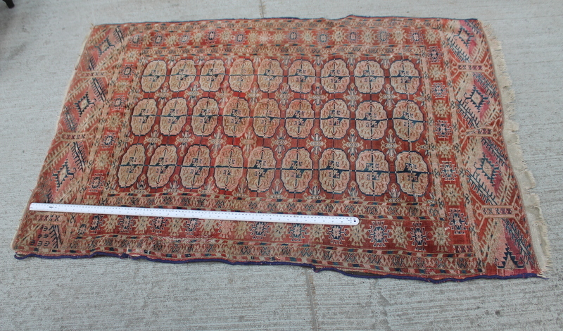 Lot 344 - Red/cream/blue patterned rug £40