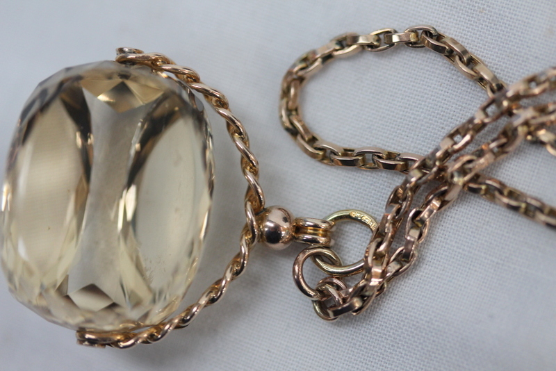 Lot 110 - Yellow Orthoclase Pendant 9ct Gold 58" Chain £340