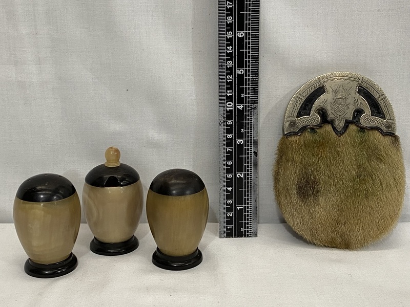 Lot 10 - Infants Sealskin Sporran & Horn Cruets £28