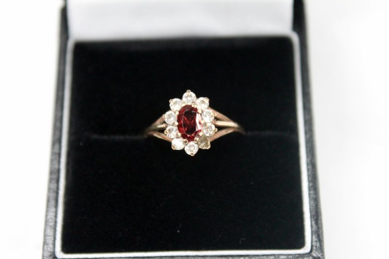 Lot 199 - 9ct gold diamond & ruby ring £55