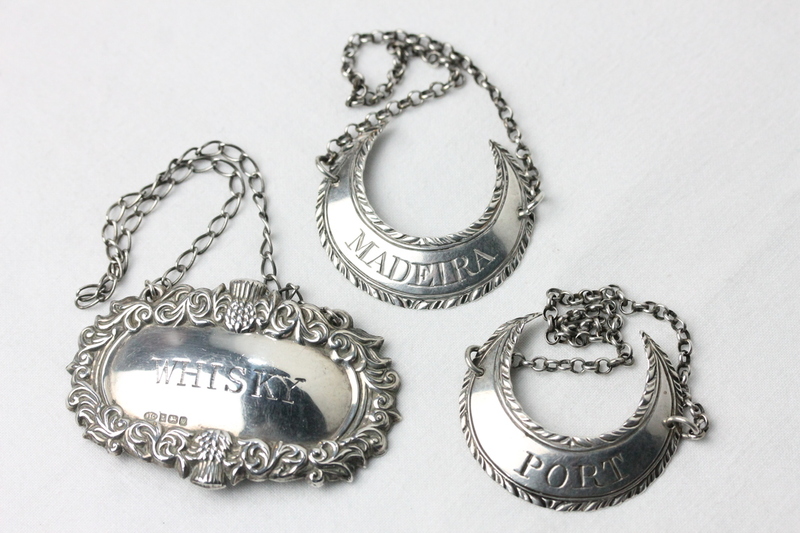 Lot 105 - 3 Silver Decanter Labels, Whisky, Port & Maderia £50