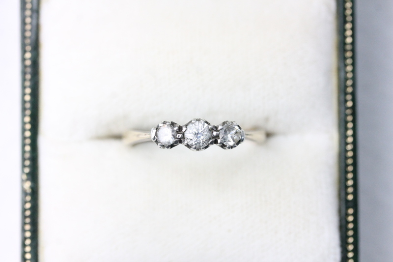 Lot 132 - 18ct Gold, 3 White Stone Ring £130