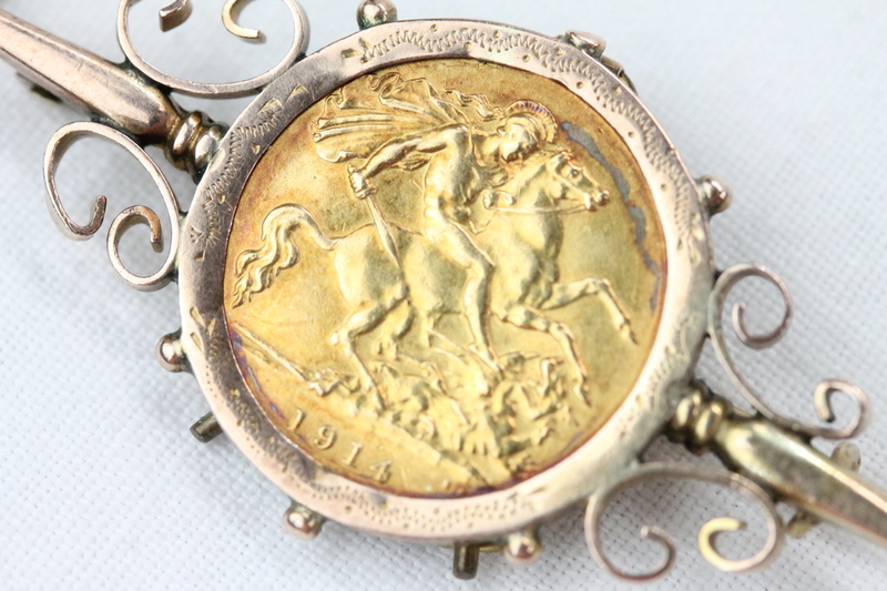 Lot 166 - 1914 Half Sovereign in 9ct Gold in 9ct Gold Brooch £230