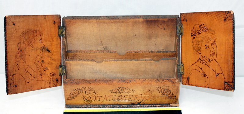 Lot 399 - 2 tier Canterbury table (some damage) £80