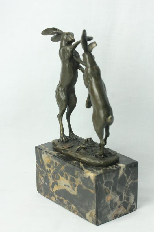 Lot 135 - 'BOXING HARES' BRONZE ON MARBLE BASE £150