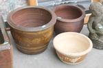 Lot 357 - PR BROWN GLAZED GARDEN POTS £65