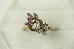 Lot 127 - 9CT GOLD RUBY & DIAMOND 'FLORAL' RING £120