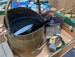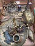 Lot 102 - BRASS & METAL WARES INC ENAMEL PANS BRASS & METAL WARES £45