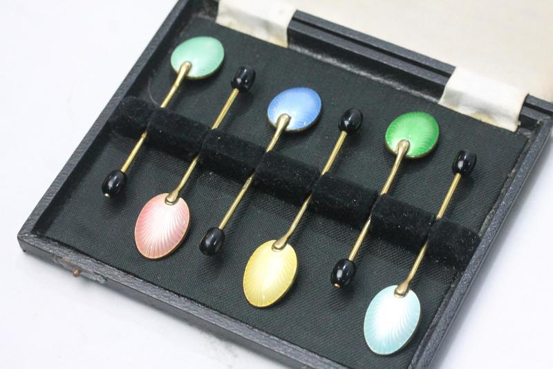 Lot 192 - SET 6 ENAMEL COFFEE SPOONS £35