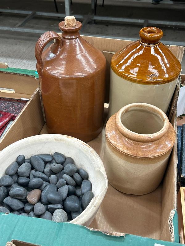 Lot 92 - STONEWARE FLAGONS, JAR & MORTAR STONEWARE FLAGONS, J £32
