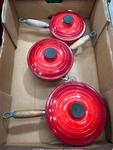 Lot 112 - LE CREUSET 'RED' SET 3 PANS LE CREUSET 'RED' SET £100