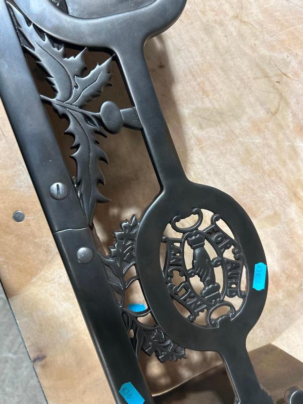 Lot 303 - 'BRANCH' WROUGHT IRON BENCH ENDS £100