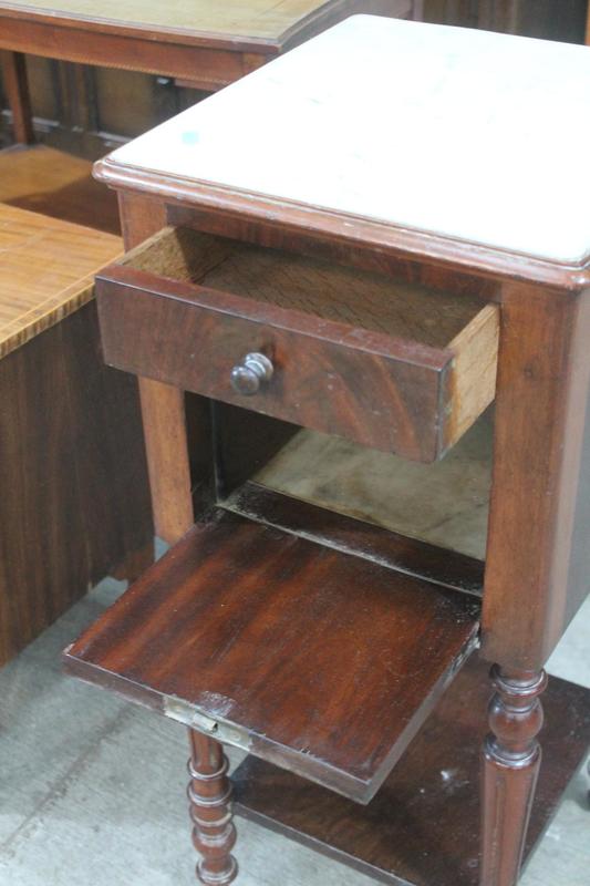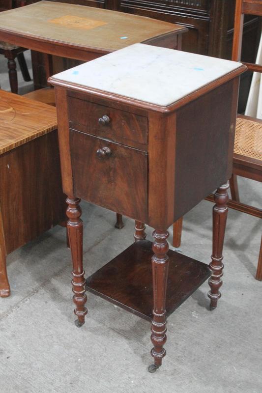 Lot 360 - MAHOGANY POT CUPBOARD WITH MARBLE INSERT £70