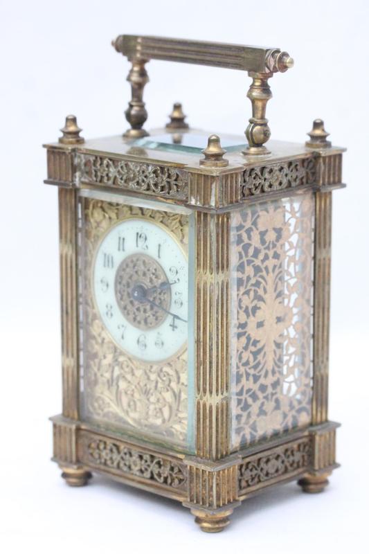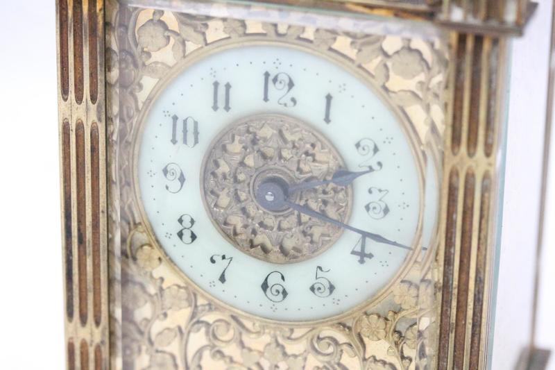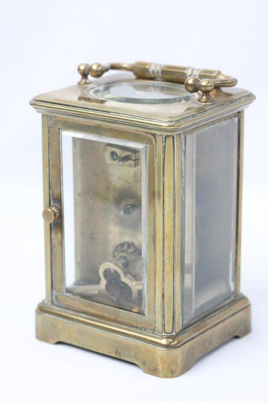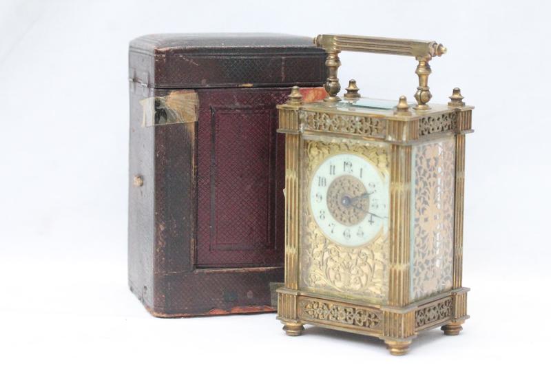 Lot 133 - BRASS CARRIAGE CLOCK WITH TRAVEL CASE £65