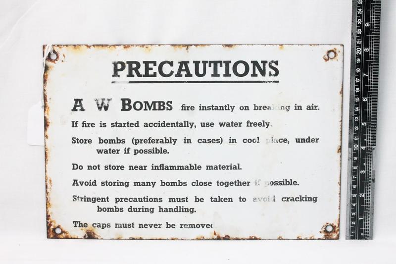 Lot 9 - ENAMEL 'PRECAUTIONS' A W BOMBS SIGN £120