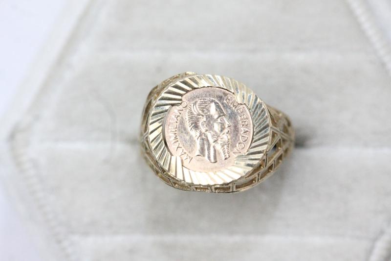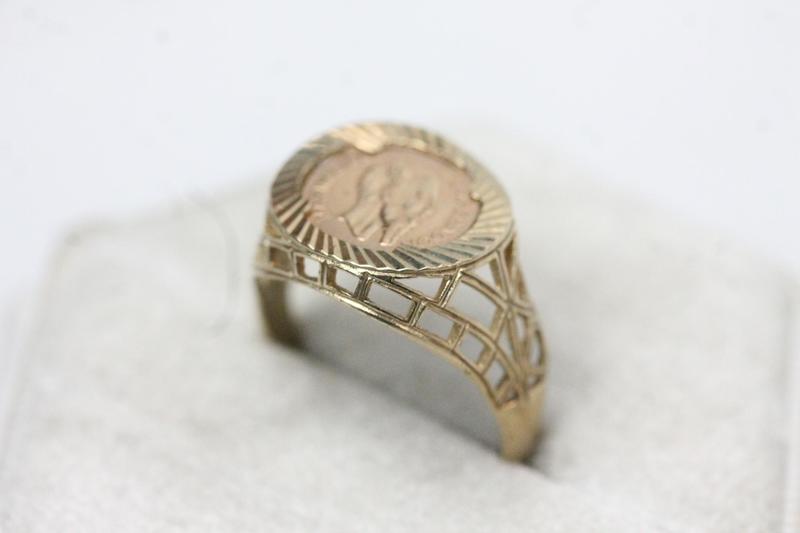 Lot 108 - 9CT GOLD COIN SET RING (O) £70