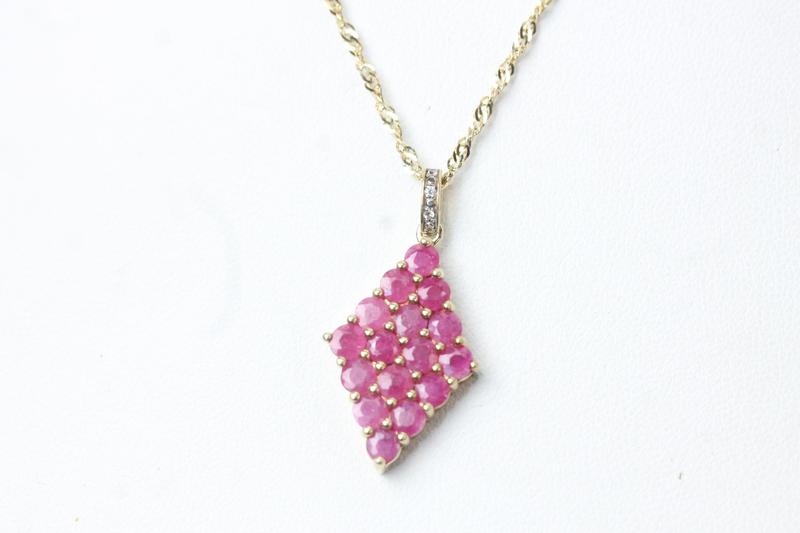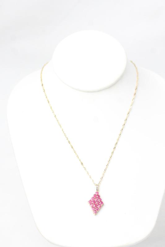 Lot 121 - 9CT GOLD CHAIN WITH RUBY &SILVER PENDANT £80