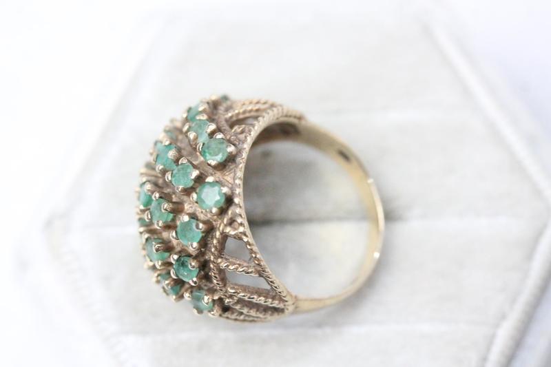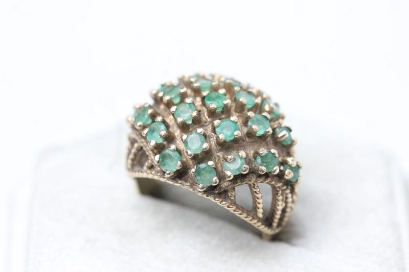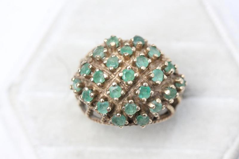 Lot 107 - 9CT GOLD GREEN STONE RING (M-N) £130