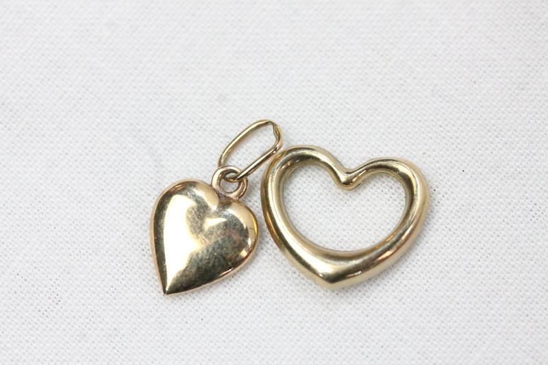 Lot 112 - 2 9CT GOLD 'HEART' PENDANTS £40