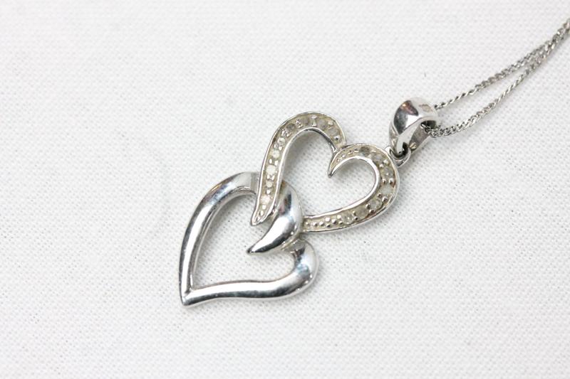 Lot 123 - 9CT WHITE GOLD DIAMOND PENDANT & CHAIN £280