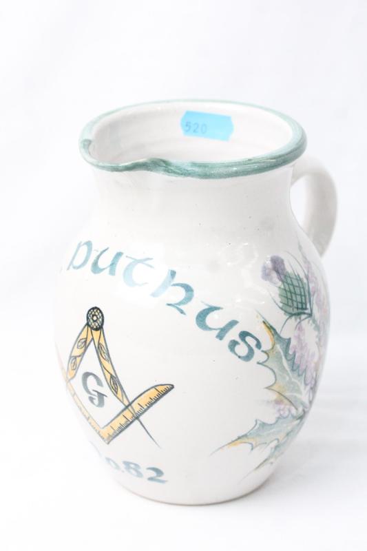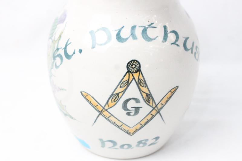 Lot 14 - TAIN POTTERY MASONIC JUG - ST.DUTHUS NOT SOLD - RESERVE £50