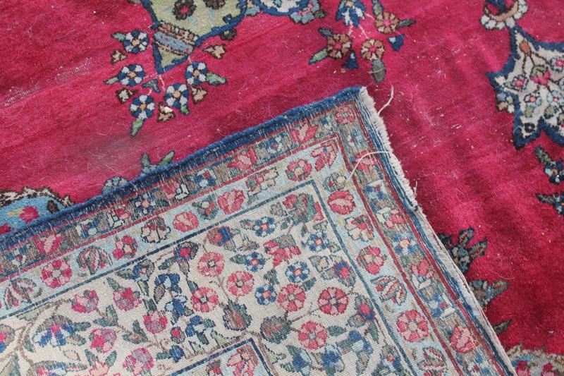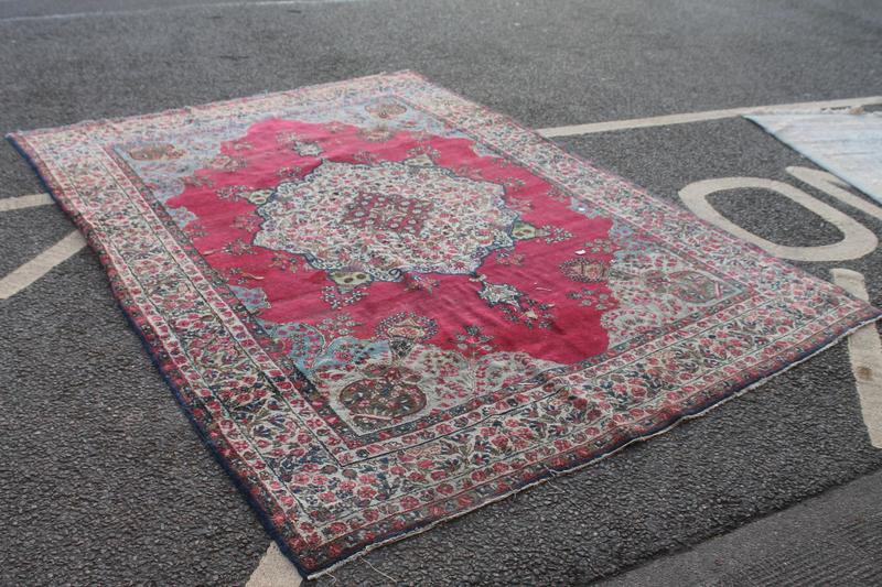 Lot 395 - DEEP RED MULTI PAT. RUG & CIRCULAR RUG £150