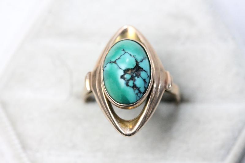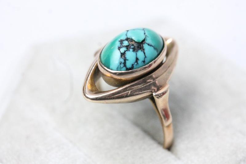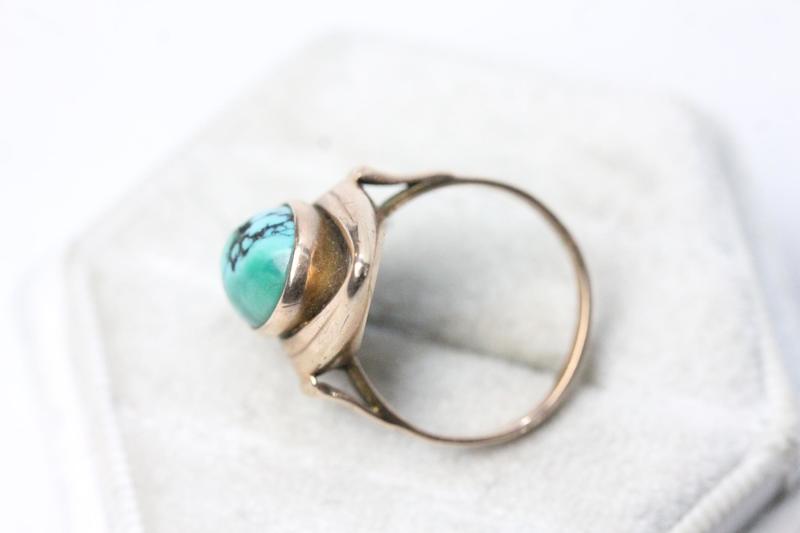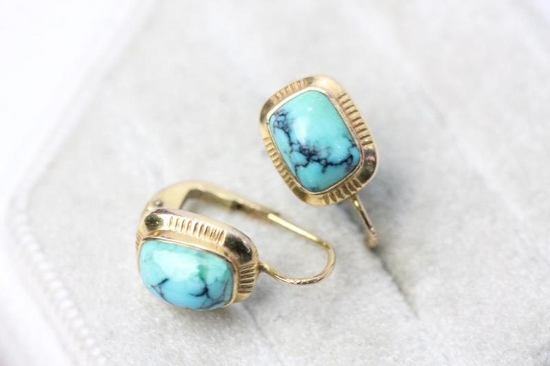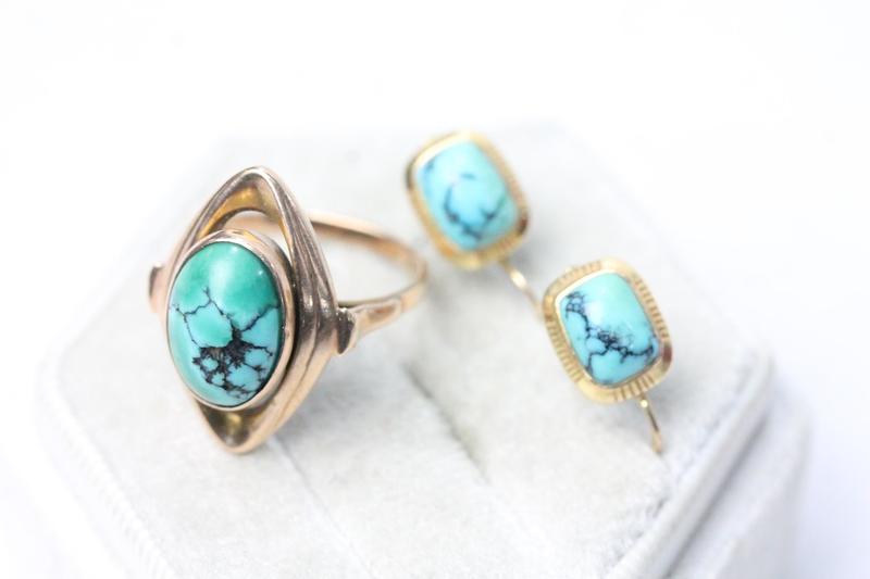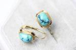Lot 104 - 9CT GOLD TURQUOISE RING & EARRINGS (M) NOT SOLD - RESERVE £380