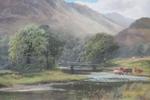 Lot 330 - 'CATTLE NEAR BRIDGE RYDAL' OIL BY JAMES CROSSLAND