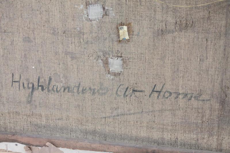 Lot 358 - 'HIGHLANDERS AT HOME' OIL BY J.B. RUSSELL