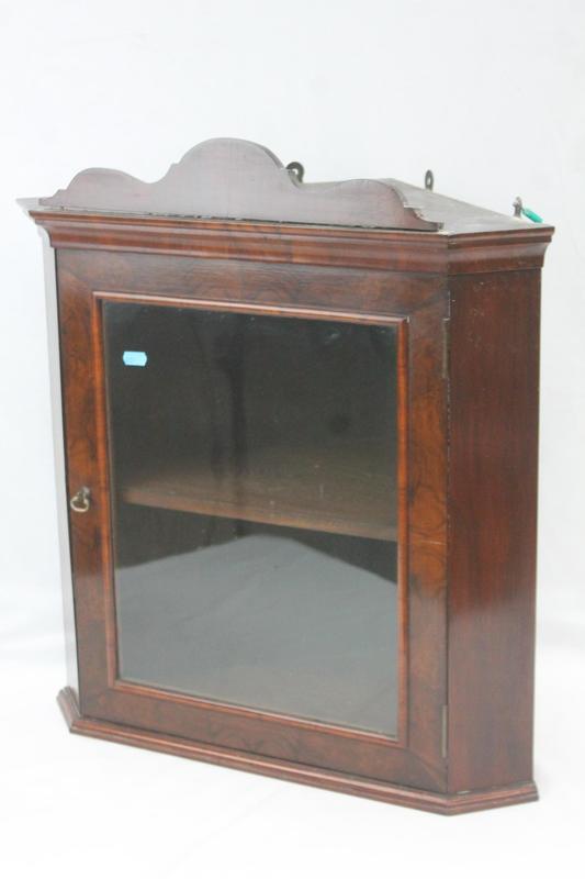 Lot 351 - MAHOGANY CORNER WALL DISPLAY CABINET